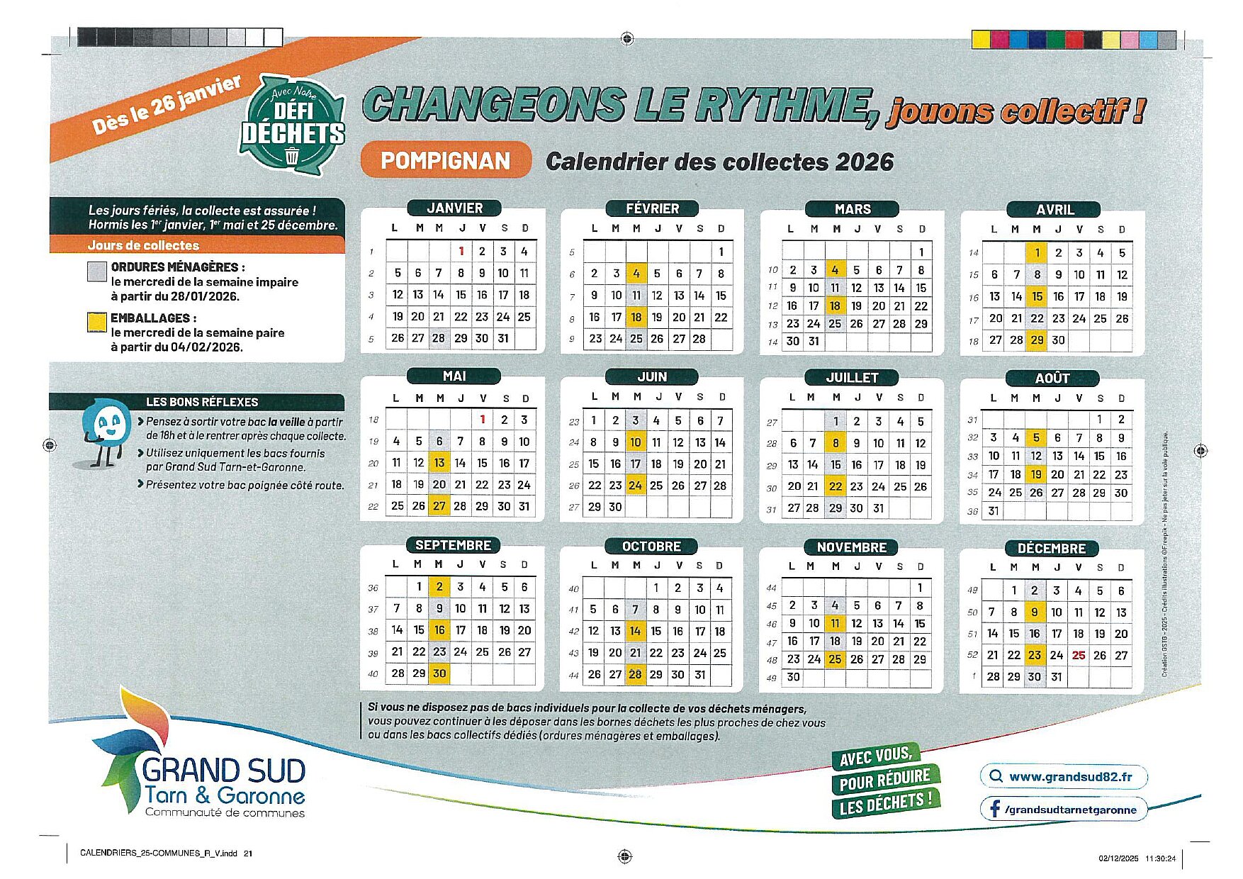 A partir du 26 janvier 2026, le planning des collectes de déchets change.
