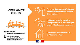 Le Tarn et Garonne est placé en vigilance Orange Crues à partir de ce matin et jusqu'à demain soir 00h00, en vigilance jaune pluie/inondation et en vigilance orange vents violents à partir de ce soir.
